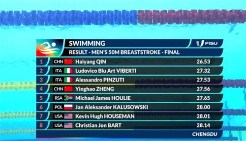 8月6日,成都大運會繼續(xù)進行中,新科世錦賽冠軍覃海洋在男子50米蛙泳決賽上的表現(xiàn)相當強勢,最終以26秒53的成績奪得金牌,這已經(jīng)是覃海洋在成都大運會斬獲的第4枚金牌。覃海洋先后在大運會上獲得50米、100米和200米的蛙泳金牌,還跟隨隊友們在男女混合4x100米混合接力賽中斬獲金牌。