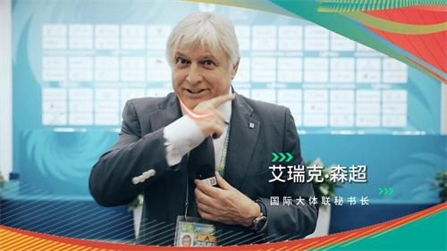 由國際大體聯秘書長艾瑞克·森超、大運會志愿者、中國運動員張雨霏、中國運動員覃海洋、觀眾等人都在用微笑表示成都成就夢想。