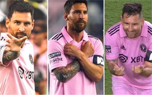 北京時間2023年8月12日,在聯盟杯四分之一決賽的比賽現場,著名球員梅西帶領所效力的邁阿密國際足球俱樂部以4:0打敗夏洛特F C足球俱樂部,成功晉級四強,比賽結束過后,梅西變花樣慶祝進球。
