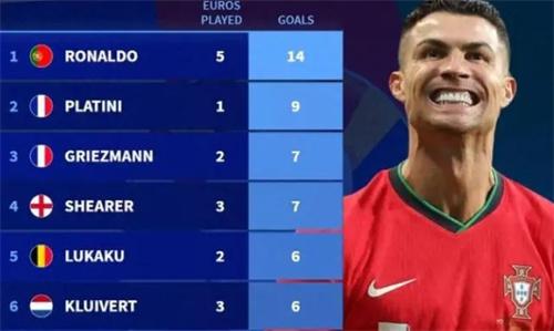 在即將開幕的這屆歐洲杯上,C羅將繼續挑戰多項紀錄。只要他出場,他將成為首位在六屆歐洲杯都有出場記錄的球員。他只需再進球,就能成為首位在六屆歐洲杯都有進球的球員。此外,C羅有望成為連續在十一屆大賽中都有進球的第一人。