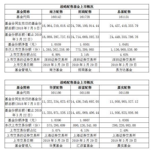 其中,華夏、嘉實、匯添富旗下3只戰略配售基金將在上交所掛牌,易方、招商、南方旗下戰略配售基金擬在深交所上市。
