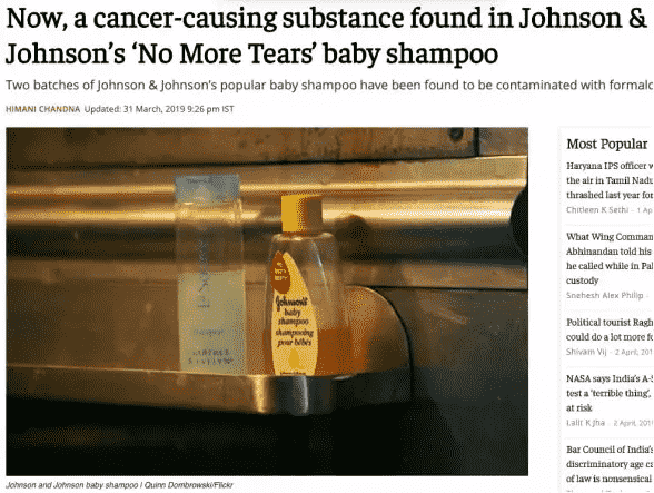 這一次,強(qiáng)生公司的嬰兒洗發(fā)水在印度被檢測(cè)出了有害物質(zhì)。