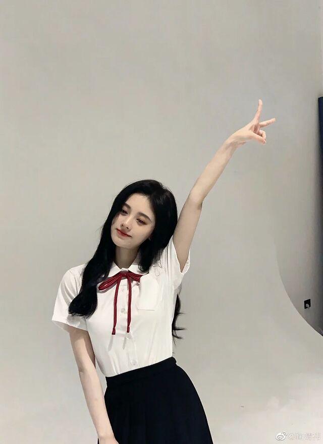 楊超越最近發的一組寫真,長發飄飄和JK感的制服外套、蝴蝶結領結放在一起,這不就是小說里那種向你走來的校園女主嗎?