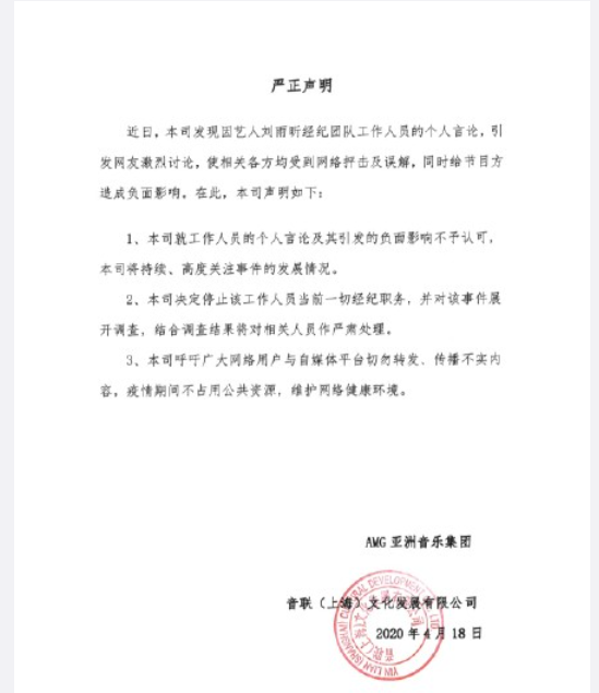 近日,《青春有你2》節目中人氣選手劉雨昕的經紀人龐君君在網上發文:"我從來沒想過人可以壞成這樣,我為我曾經認識過你而惡心,江湖路遠,多行不義必自斃",并配圖雪花和綠茶,疑似內涵同是參加《青春有你2》的選手孔雪兒,此事在網上引發雙方粉絲爭論不休。
