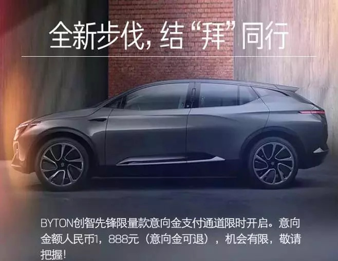 拜騰目前已經限時開啟了“BYTON創智先鋒限量款”車型的購車意向金支付通道。