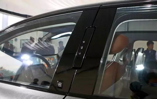 BYTON M-Byte Concept,但加入了(BYTON Intuitive Access)功能,該功能,信息匹配成功后方可解鎖。此外,傳統的后視鏡在新車上也被后視攝像頭所取代。
