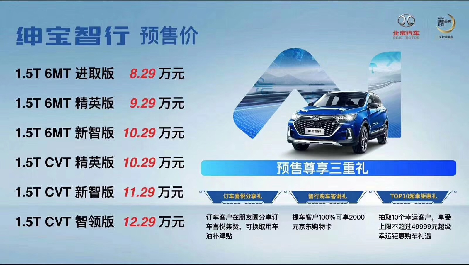 為了讓追逐AI科技的用戶輕松享受紳寶智行“智慧出行”的全新體驗,預售期間,北京汽車還推出了訂車歡躍分享禮、智行購車酬謝禮、TOP10超幸鉅惠禮三重大禮。
