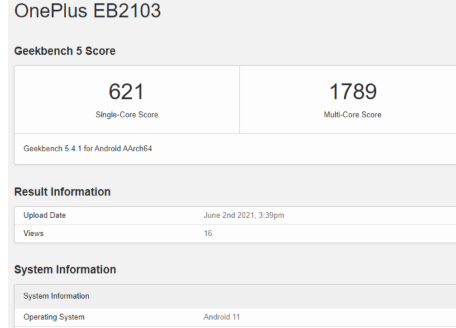 最近的一份報告稱,OnePlus Nord CE 5G擁有 8 GB 的 RAM。但是,Geekbench 列表表明可能存在具有 12 GB RAM 的頂級變體。在基準測試站點的單核和多核測試中,該手機分別獲得了 621 和 1789 的分數。