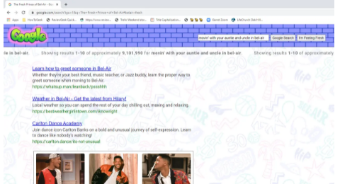 但是,不要在完成 Google ala 90s 的使用后就離開,一定要按后退按鈕。我不想破壞這個驚喜,但這可能是整個復(fù)活節(jié)彩蛋噱頭中最好的部分。事實上,這就是 Google The Fresh Prince of Bel-Air 現(xiàn)在的全部原因 。在這里,我們甚至 會為您谷歌。