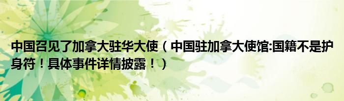 大家好,綜合小編來為大家講解下。中國召見了加拿大駐華大使,中國駐加拿大使館:國籍不是護身符!具體事件詳情披露!很多人還不知道,現(xiàn)在讓我們一起來看看吧!