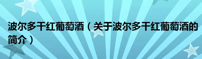 本文關(guān)于波爾多干紅葡萄酒的簡介就講解完畢,希望對大家有所幫助。