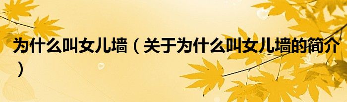 本文關(guān)于為什么叫女兒墻的簡(jiǎn)介就講解完畢,希望對(duì)大家有所幫助。
