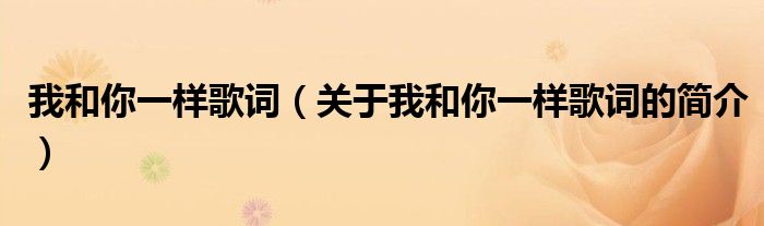 大家好,我和你一樣歌詞,關于我和你一樣歌詞的簡介很多人還不知道,現在讓我們一起來看看吧!