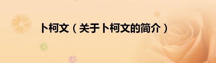 大家好,卜柯文,關于卜柯文的簡介很多人還不知道,現在讓我們一起來看看吧!