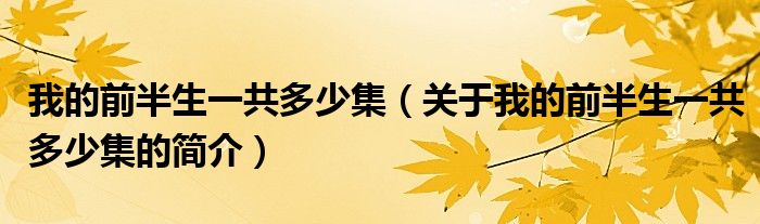 本文關于我的前半生一共多少集的簡介就講解完畢,希望對大家有所幫助。