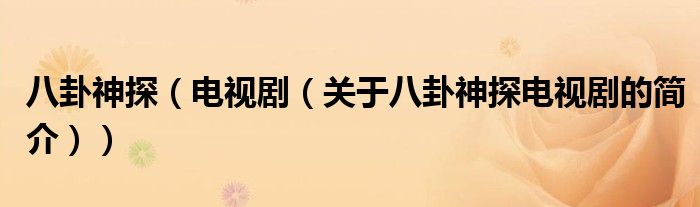 本文關(guān)于八卦神探 電視劇的簡(jiǎn)介就講解完畢,希望對(duì)大家有所幫助。