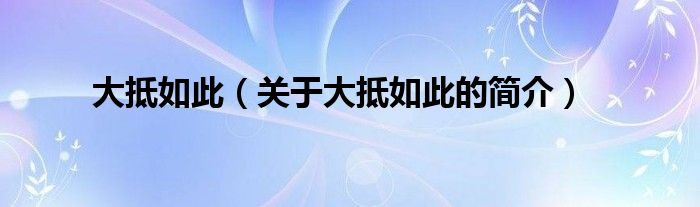 大家好,大抵如此,關于大抵如此的簡介很多人還不知道,現在讓我們一起來看看吧!