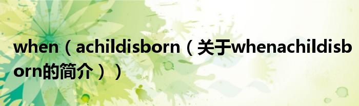 大家好,when a child is born,關(guān)于when a child is born的簡介很多人還不知道,現(xiàn)在讓我們一起來看看吧!