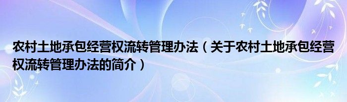 本文關(guān)于農(nóng)村土地承包經(jīng)營權(quán)流轉(zhuǎn)管理辦法的簡(jiǎn)介就講解完畢,希望對(duì)大家有所幫助。
