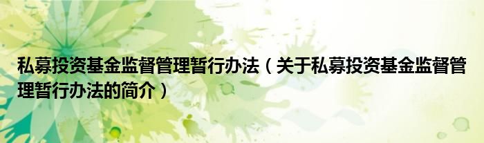 本文關于私募投資基金監督管理暫行辦法的簡介就講解完畢,希望對大家有所幫助。