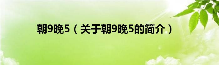 大家好,朝9晚5,關(guān)于朝9晚5的簡介很多人還不知道,現(xiàn)在讓我們一起來看看吧!