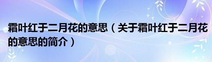 本文關于霜葉紅于二月花的意思的簡介就講解完畢,希望對大家有所幫助。