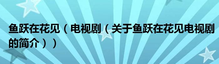 本文關于魚躍在花見 電視劇的簡介就講解完畢,希望對大家有所幫助。