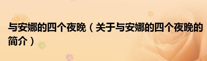 大家好,與安娜的四個夜晚,關于與安娜的四個夜晚的簡介很多人還不知道,現在讓我們一起來看看吧!