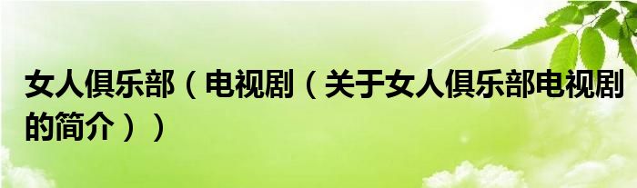 本文關于女人俱樂部 電視劇的簡介就講解完畢,希望對大家有所幫助。