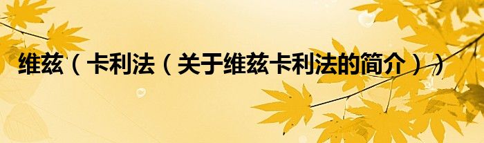 大家好,維茲 卡利法,關于維茲 卡利法的簡介很多人還不知道,現在讓我們一起來看看吧!