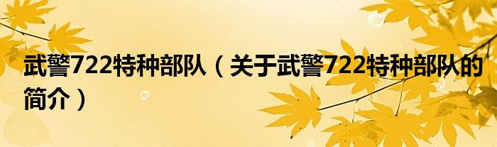 本文關(guān)于武警722特種部隊(duì)的簡(jiǎn)介就講解完畢,希望對(duì)大家有所幫助。