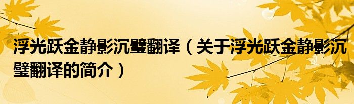 本文關(guān)于浮光躍金靜影沉璧翻譯的簡介就講解完畢,希望對大家有所幫助。