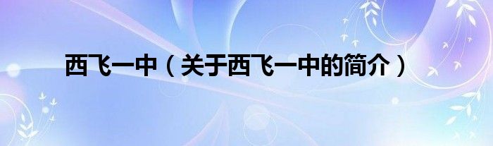 本文關于西飛一中的簡介就講解完畢,希望對大家有所幫助。