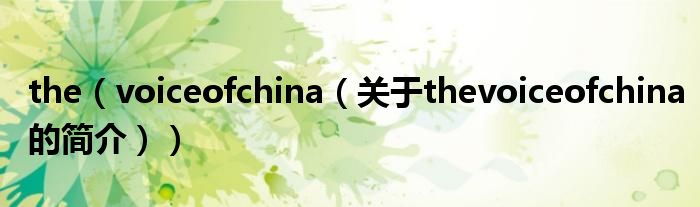 本文關于the voice of china的簡介就講解完畢,希望對大家有所幫助。