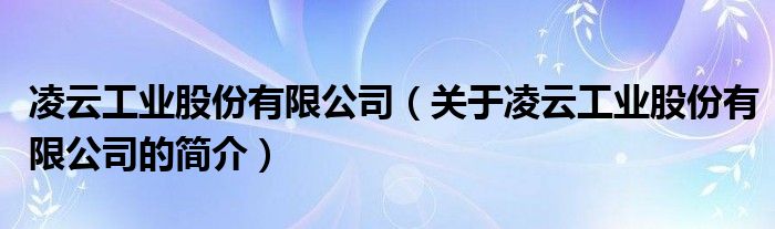 本文關(guān)于凌云工業(yè)股份有限公司的簡(jiǎn)介就講解完畢,希望對(duì)大家有所幫助。