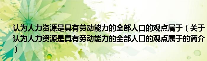 本文關于認為人力資源是具有勞動能力的全部人口的觀點屬于的簡介就講解完畢,希望對大家有所幫助。