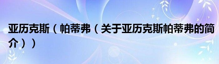 本文關(guān)于亞歷克斯 帕蒂弗的簡介就講解完畢,希望對大家有所幫助。