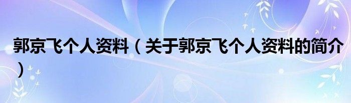 本文關于郭京飛個人資料的簡介就講解完畢,希望對大家有所幫助。