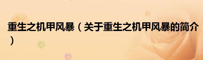 本文關于重生之機甲風暴的簡介就講解完畢,希望對大家有所幫助。