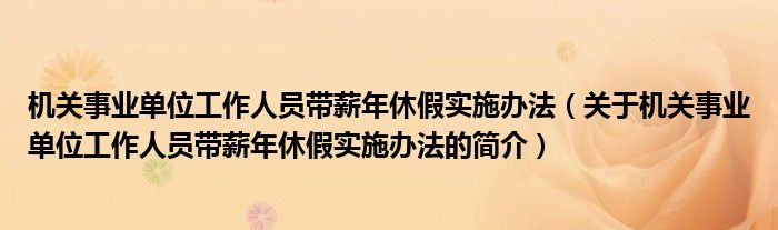 本文關(guān)于機(jī)關(guān)事業(yè)單位工作人員帶薪年休假實(shí)施辦法的簡(jiǎn)介就講解完畢,希望對(duì)大家有所幫助。