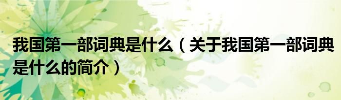 本文關(guān)于我國第一部詞典是什么的簡介就講解完畢,希望對大家有所幫助。