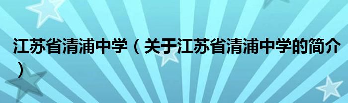本文關于江蘇省清浦中學的簡介就講解完畢,希望對大家有所幫助。