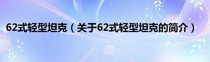 本文關(guān)于62式輕型坦克的簡介就講解完畢,希望對大家有所幫助。