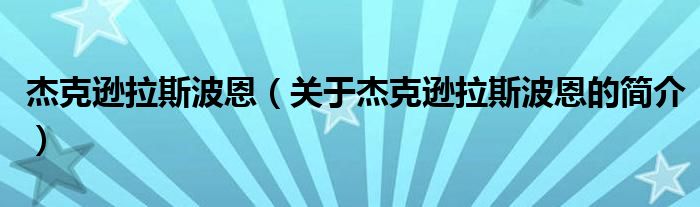 大家好,杰克遜拉斯波恩,關(guān)于杰克遜拉斯波恩的簡(jiǎn)介很多人還不知道,現(xiàn)在讓我們一起來(lái)看看吧!