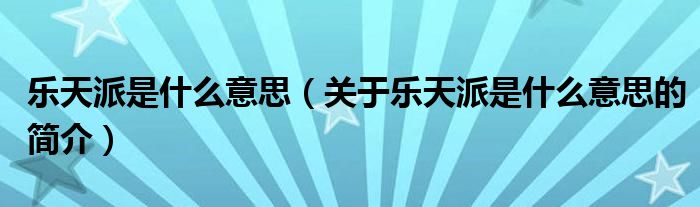 本文關于樂天派是什么意思的簡介就講解完畢,希望對大家有所幫助。