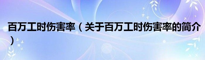 本文關(guān)于百萬工時(shí)傷害率的簡介就講解完畢,希望對(duì)大家有所幫助。