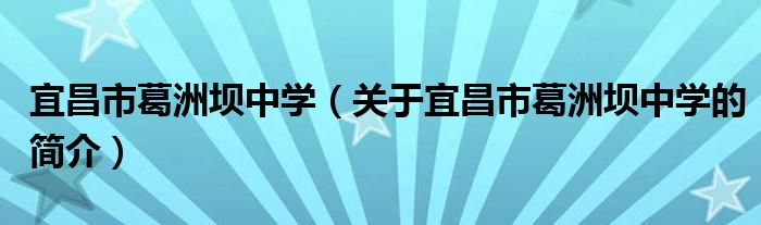 大家好,宜昌市葛洲壩中學,關于宜昌市葛洲壩中學的簡介很多人還不知道,現在讓我們一起來看看吧!