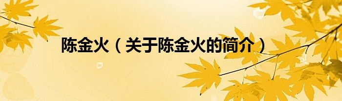 大家好,陳金火,關于陳金火的簡介很多人還不知道,現在讓我們一起來看看吧!