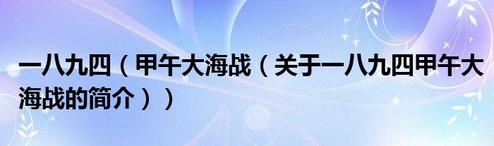 大家好,一八九四 甲午大海戰(zhàn),關(guān)于一八九四 甲午大海戰(zhàn)的簡(jiǎn)介很多人還不知道,現(xiàn)在讓我們一起來看看吧!