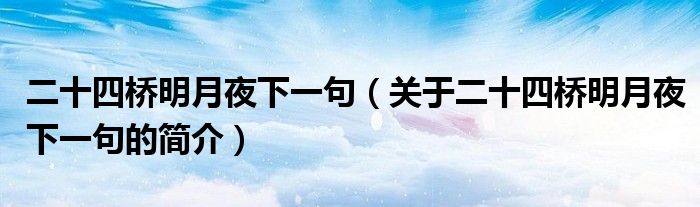 本文關于二十四橋明月夜下一句的簡介就講解完畢,希望對大家有所幫助。